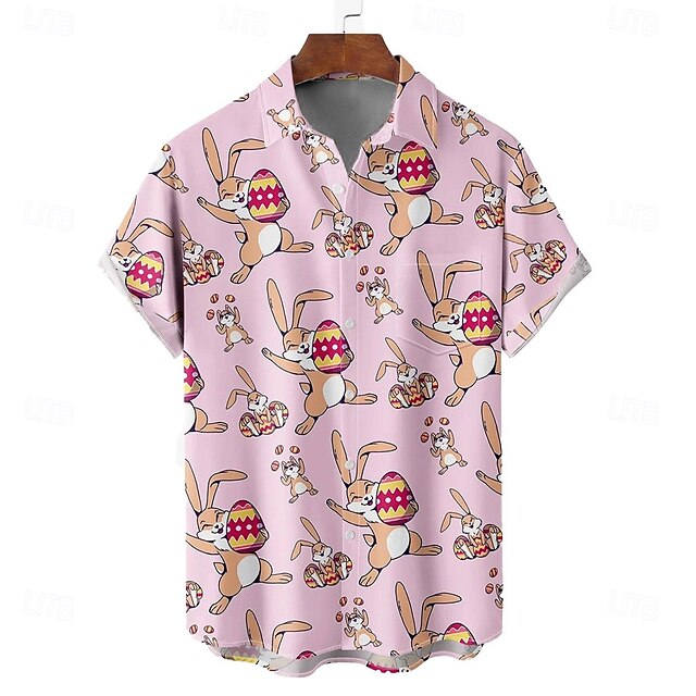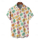 More information about Easter Men's Bunny Easter Eggs Shirt Casual Shirt Button Up Shirt Short Sleeve Vintage Retro Vacation Holiday Festival Summer Spring Turndown 3D Print Collared Shirts Front One Pocket Pink Beige