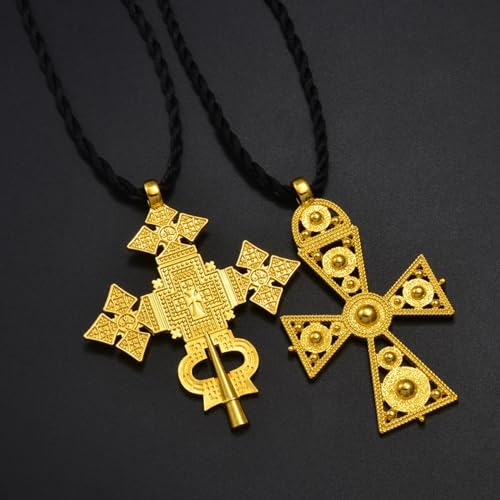 Ethiopian Cross Necklace for Women - Traditional Large Pendant With Rope Ornaments - Eritrean Big Cross Jewelry
