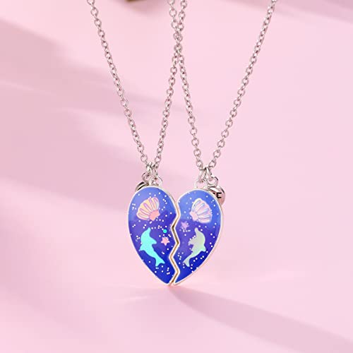 Cute Dolphin Shell BFF Friendship Necklace for Women Glitter Purple Funny Cartoon Animal Half Matching Heart Pendant Necklaces Set for 2 Birthday Christmas Graduation Jewelry supreme Friend Bestie Sister Daughter Gifts
