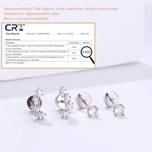 Material: Sterling SilverMetal type: Sterling SilverBack Finding: FlatbackEarring design: StudGem type: Cubic ZirconiaBrief content visible, double tap to read full content. Full content visible, double tap to read brief content. Bundles with this item Previous page Big Earrings Stud and FlatBack Earrings -3% $27.80 Was: $28.80 Next page See all bundlesAdvantage: Experience unparalleled comfort with our flat tback earrings. Engineered for security and durability, they stay firmly in place without falling out. Say goodbye to the discomfort of ear pins poking or tangling in hair while you sleep. just 1g-2g per pair, these tiny cz stud earrings faultless for all-day and all-night wear.Design :Adorn yourself with the brilliance of AAA+ cubic zirconia stud earrings, offering unmatched sparkle. Our versatile 2-pair set caters to various piercing styles – from cartilage earrings, tragus piercing , helix piercing, to multi-hole options, adding a touch of elegance.Premium Materials : Experience the blend of elegance and comfort with our Genuine 925 sterling silver flatback earrings, lavishly plated in white gold/18K gold. Designed for sensitive skin, these hypoallergenic, nickel-free and lead-free earrings with smooth edges ensure an irritation-free experience.Size: Perfectly sized for versatility, our no poke earrings feature a gauge size of 20g(0.8mm) and CZ stud sizes ranging from 2-10mm. Ideal for every occasion – from daily wear to school, shopping, and parties – these tiny stud earrings will be your go-to jewelry.Perfect Gift Choice : Presented in a charming jewelry box, this sterling silver flat back earrings makes an ideal gift for any occasion. Whether it's for wife, daughter, mother, or friend, these silver stud earrings are perfect for birthdays, graduations, holidays, or as a special token of appreciation.Reliable Service:If you have any questions about ZELORES jewelry, our team is ready to assist. We aim to provide a flawless shopping experience and resolve any issues promptly. Perfect for everyday use. premium materials and excellent craftsmanship ensure long-lasting durability.
