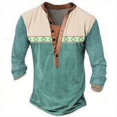 trending ! Men's Ethnic Henley Shirt Tee Long Sleeve Ethnic Casual Summer Spring Light Green Henley Henley T-Shirt