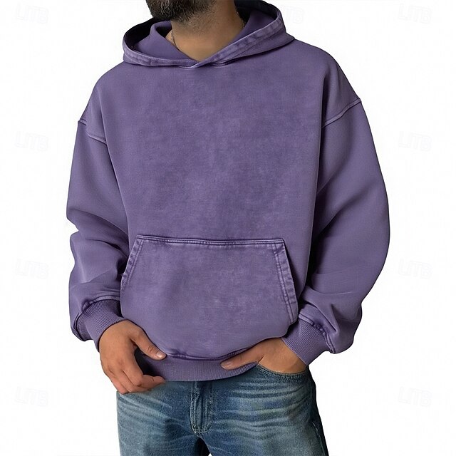Why Choose Men's Pullover Hoodie Sweatshirt Distressed Hoodie Black Purple Gray Hooded Plain Pocket Casual Daily Going out Polyester Streetwear Casual Fall & Winter Clothing Apparel Hoodies Sweatshirts?