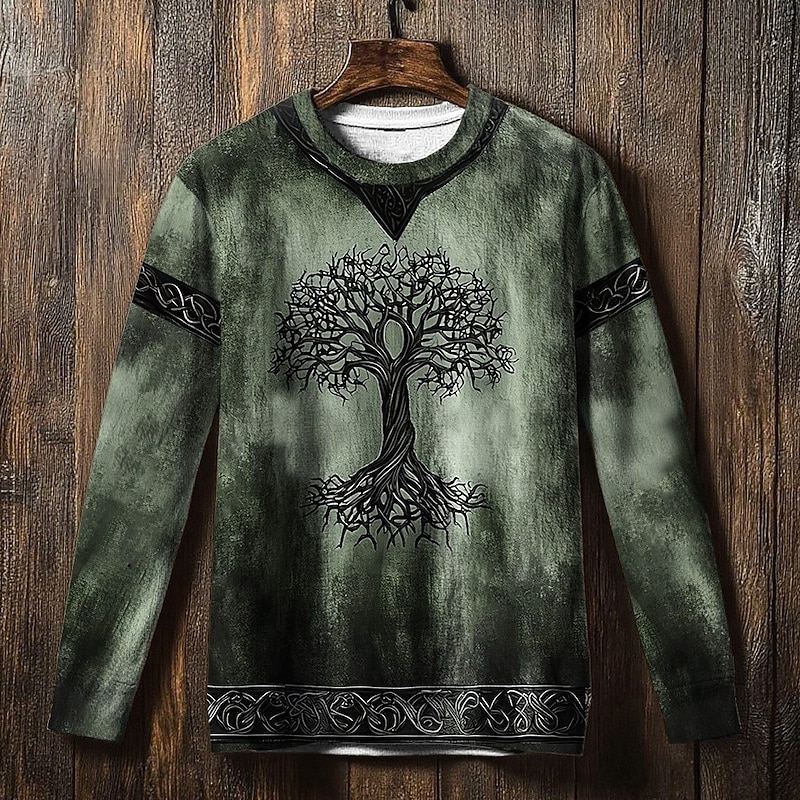 trending ! Men's Sweatshirt Blue Green Khaki Crew Neck Tree Of Life Yggdrasil Celtic Knot Print Casual Daily Holiday Vintage Viking Fall Winter Clothing Apparel Hoodies Sweatshirts