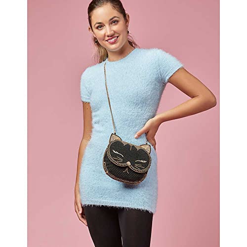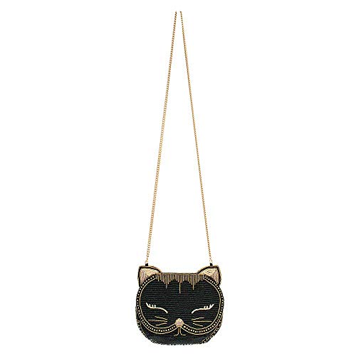 • This fully-beaded, black cat saddle bag is irresistibly charming with it's smiling eyes, 3d ears and a surprise inside: an embroidered "Meow" under the flap!