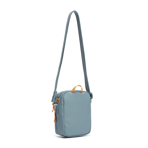 Fabric type: PolyesterOrigin: ImportedClosure type: ZipperLining: PolyesterJoin Prime Cancel anytimeANTI-THEFT DESIGN - Main and front zip pullers attachable to hooks to defer pickpockets. With cut-resistant, steel wire reinforced shoulder strap, plus RFID blocking pocket to keep your credit cards/IDs safe.ORGANIZATION - Dock lock secured zippered compartments. Main compartment with RFID blocking pocket and key and wallet clip. Front compartment for quick access to travel essentials.RFID SAFE - RFID blocking material meets official US FIPS 201 quality standard to protect credits cards/ IDs against unauthorized scans. Crossbody can be hidden discreetly under a jacket when going abroad to crowded tourist hotspots.COMPACT & LIGHT - Weighs only 0.33 lbs. Perfectly sized, compact enough to keep essentials like passport, phone, cards secure. Hassle-free at check-in / ticketing counters with everything organized. Enjoy peace of mind when traveling and on daily commute.DIMENSIONS, WEIGHT & WARRANTY - 6.9H x 4.9W x 3.2D Weight: 0.33 lbs. Made of soft, durable, water resistant & easy to wipe clean recycled polyester to ensure secure & long-lasting usage everyday & during weekends. Comes with 5-year Pacsafe warranty. Perfect for everyday use. High quality materials and excellent craftsmanship ensure long-lasting durability.