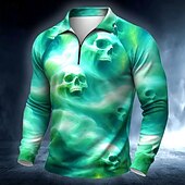 $21.99 - Day of the Dead Men's Skull Skulls Polo Long Sleeve Polo Shirts Casual Dark Outdoor Street Daily Wear 3D Print Quarter Zip Polo Spring Fall Winter Blue Brown Green 2025. Shop for cheap Halloween Polos online? Buy at lightinthebox.com on sale today!