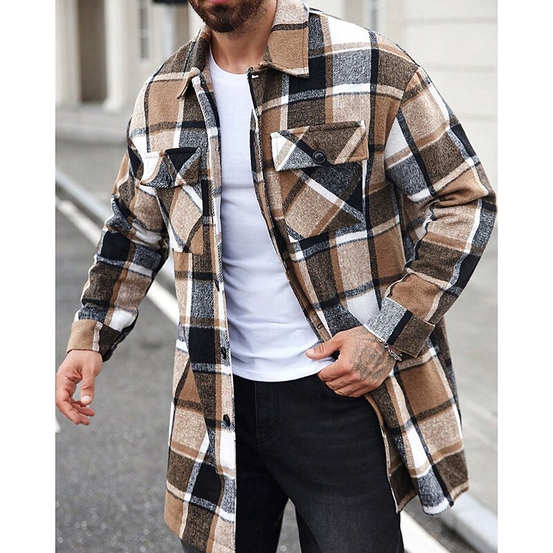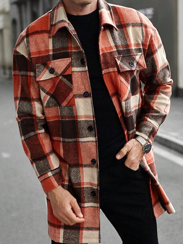 This Men's Lightweight Jacket Shirt Jacket Casual Jacket Shacket Vacation Daily Thermal Warm Pocket Spring Fall Plaid Fashion timeless Lapel Regular Black Wine Orange Khaki Army Green Jacket combines elegant design with practical functionality. Every detail has been carefully considered to ensure you get the best possible experience. The first-class construction means this product will serve you well for years to come.