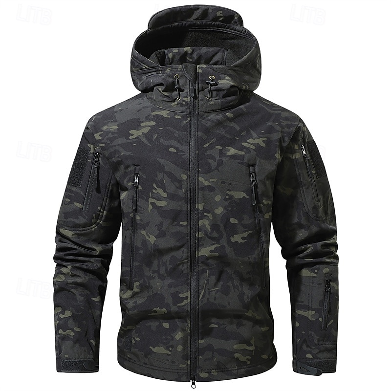 This Men's Outdoor Jacket Softshell Jacket Hiking Jacket Vacation Daily Windproof Waterproof Pocket Fall Winter Camouflage Fashion timeless Hooded Regular Dark Gray Black Light Green Blue Dark Green Jacket combines elegant design with practical functionality. Every detail has been carefully considered to ensure you get the best possible experience. The first-class construction means this product will serve you well for years to come.
