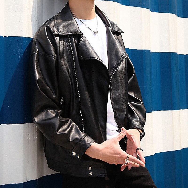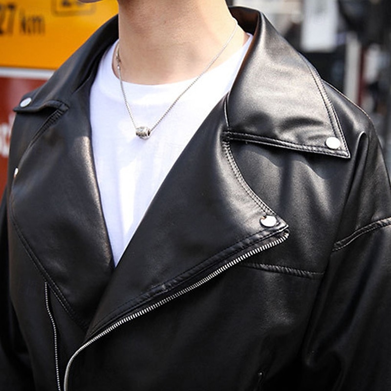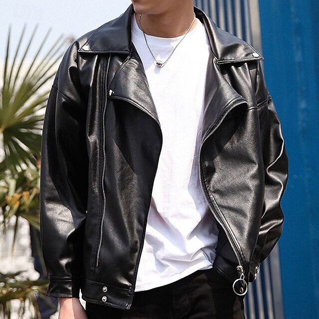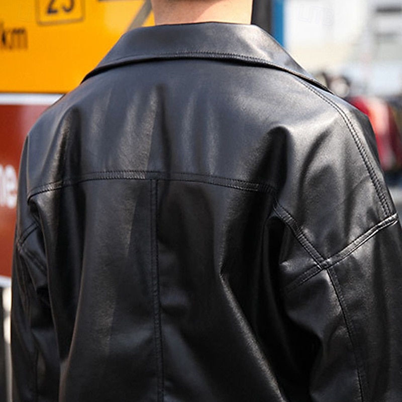 More information about Men's Faux Leather Jacket Transition Jacket Biker Jacket Motorcycle Jacket Vacation Daily Windproof cozy Pocket Fall & Winter Plain Fashion traditional Lapel Regular Black Jacket