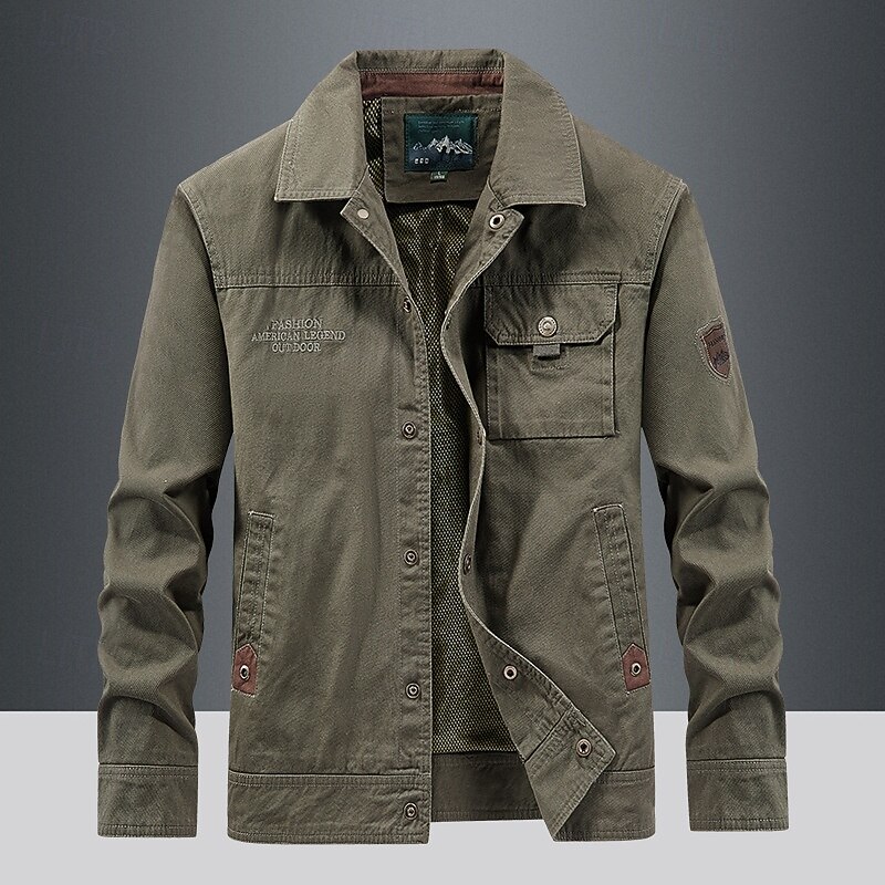 More information about Men's Sport Coat Chore Jacket Windcheater Jacket Sports Outdoor Casual Waterproof Windbreaker Zipper Pocket Fall Winter Solid Color WorkWear Hooded Regular Navy Blue Khaki Army Green Jacket