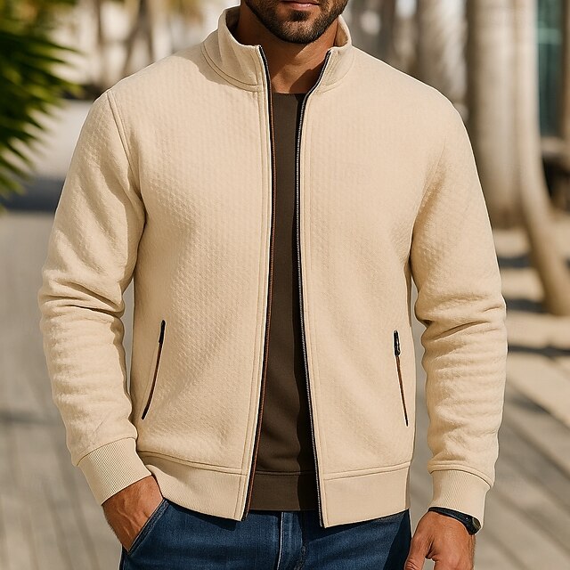 trending ! Men's Outdoor Jacket Sport Coat Formal Home Pocket Minimalist Spring Fall Solid Color Active Neutral Shirt Collar Regular Black Burgundy Navy Blue Khaki Grey Jacket