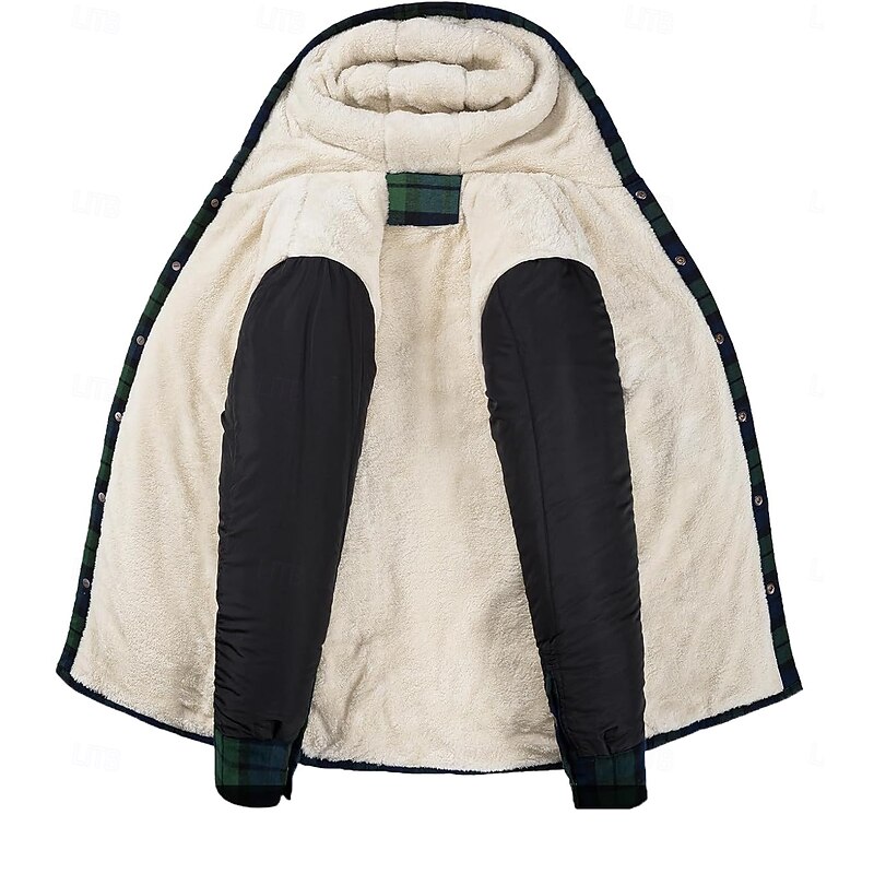 : Crafted from high-quality polyester, this men's jacket features a iconic plaid checkered pattern, offering both durability and warmth. The exterior boasts a timeless flannel look, while the interior is lined with soft fleece for added insulation during the chilly fall and winter seasons.