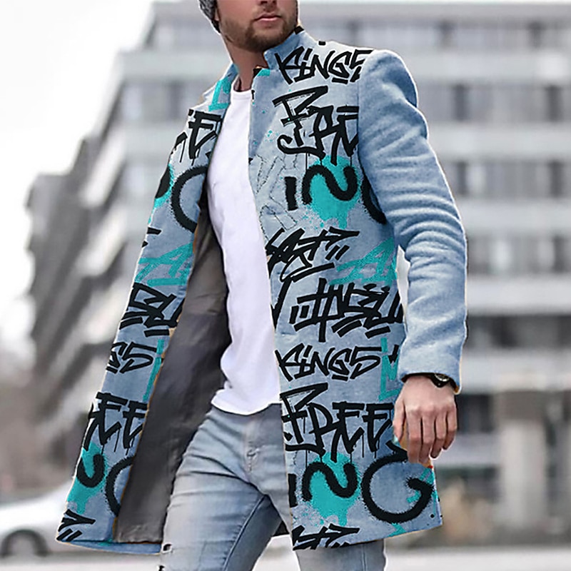 Men's Winter Coat Overcoat Coat Daily Wear Vacation With Pockets Print Front Pocket Fall & Winter Letter Streetwear Sport Turndown Regular Yellow Blue Purple Green khaki Jacket