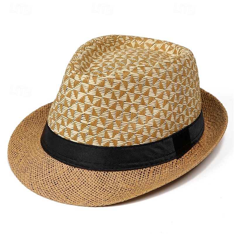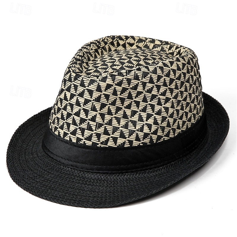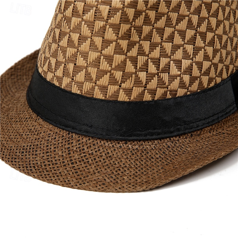 Highlights [Title] : Men's Sun Hat Bowler Hat - Black, Khaki, Licorice Fashion Casual Street Daily Color Block Geometric Sunscreen Breathable [Fabric] : Expertly crafted from lightweight and breathable woven straw, this men's sun hat offers excellent comfort for spring and summer days. The use of licorice material ensures durability and style. [Fit] : The hat boasts a classic bowler style, featuring a structured and sleek silhouette with a short brim that suits various face shapes. [Design Highlights] : This sophisticated fedora includes a unique checkered pattern on the straw material, adding visual interest and sophistication. The hat is finished with a black grosgrain ribbon band that enhances its polished appearance. [Occasions] : Ideal for street, casual, and daily wear, this hat is perfect for sunny outings and adds a fashionable touch to your ensemble. Whether you're attending a casual gathering or enjoying a day in the sun, this hat provides both sun protection and style. [Size Range] : Available in size M, with color options in Black, Beige, Coffee, and Khaki, catering to different style preferences. Perfect for everyday use. superior materials and excellent craftsmanship ensure long-lasting durability.