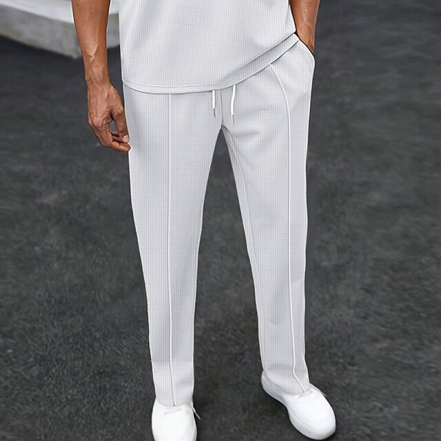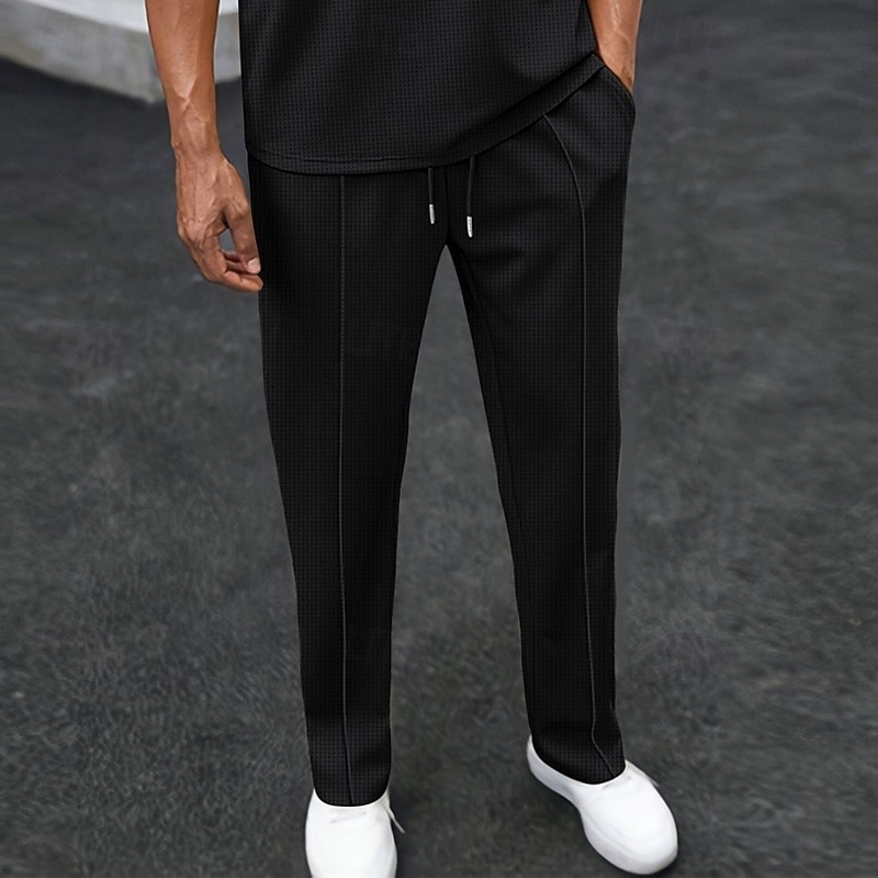 This Men's Sweatpants Trousers Waffle Pants Drawstring Pleated Elastic Waist Solid Color Moisture Wicking Breathable Full Length Sports Outdoor Casual Daily Fashion Streetwear Black White combines elegant design with practical functionality. Every detail has been carefully considered to ensure you get the finest possible experience. The supreme construction means this product will serve you well for years to come.