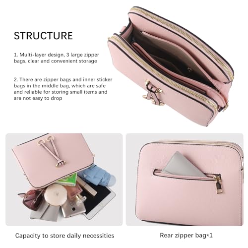 trending ! Triple Zip Small Crossbody Bags for Women Vegan Leather Purses Shoulder Handbags,Wide Strap Cell Phone Purse