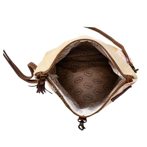 More information about Myra Bag Crossbody Bag for Women - Western Upcycled Canvas & Leather Shoulder Handbag Beige