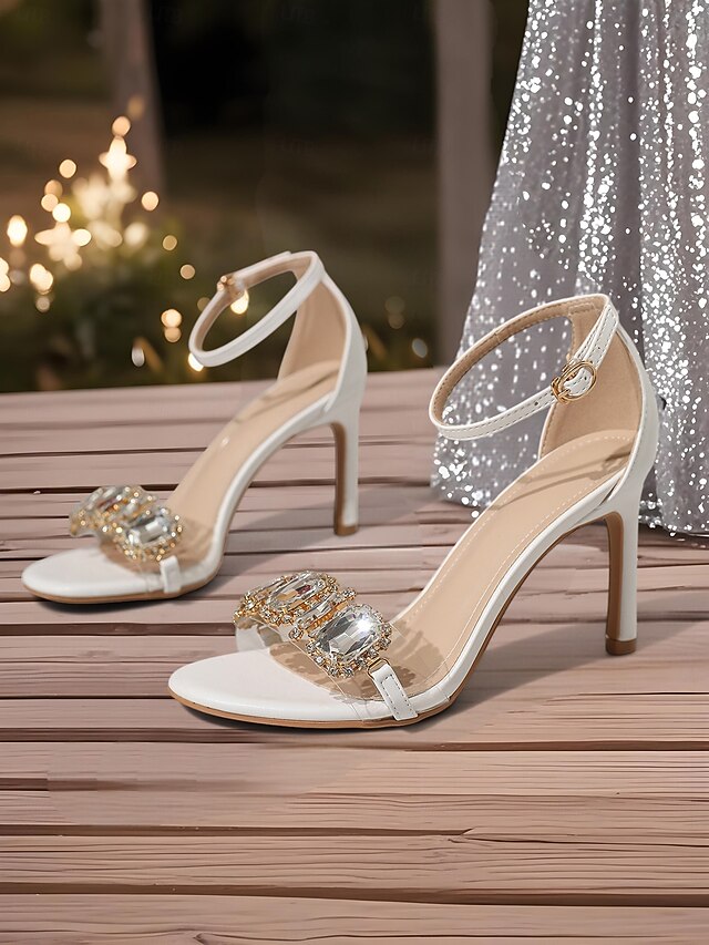 Why Choose Women's Black Stiletto Heeled Sandals with Large Crystal Embellishments and Ankle Strap – Glamorous Party Shoes for Cocktail Events and Formal Evenings?