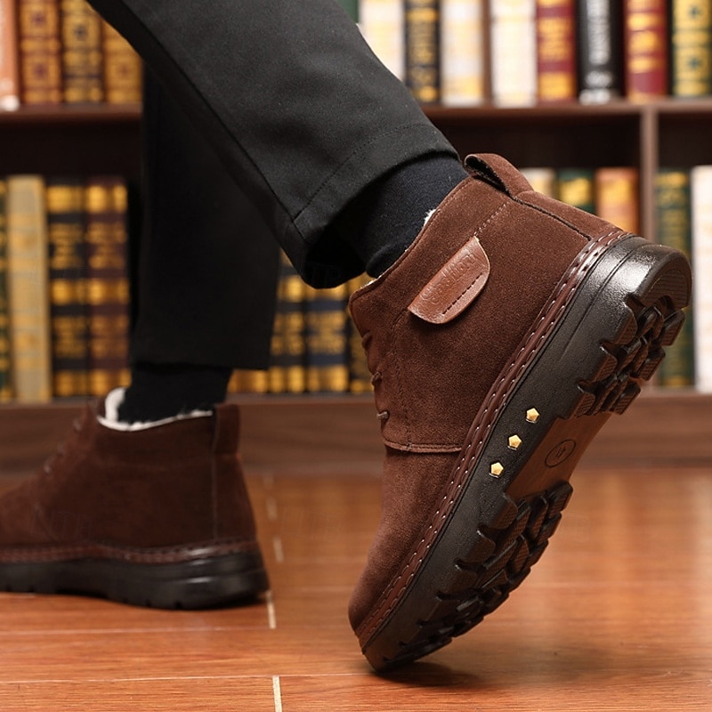 Men's Brown Faux Suede Ankle Boots with comfortable Plush Lining and Non-Slip Sole - Ideal for Winter Outdoor Wear