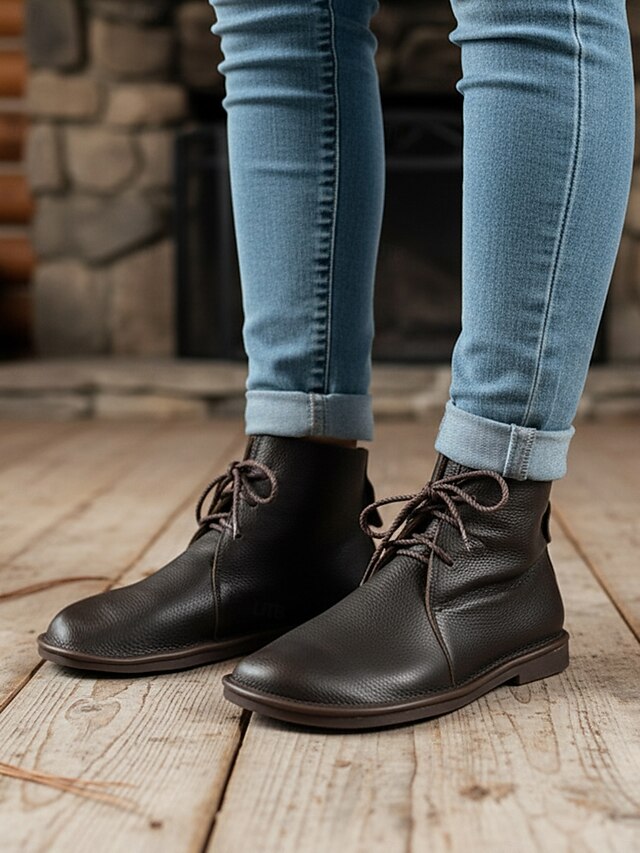 At motoshowbielsko.pl, we believe in providing our customers with only the best products. This Women's Coffee Genuine Leather Lace-Up Ankle Boots, Vintage Casual Round Toe Flat Booties, Comfortable Fall & Winter Shoes for Daily Wear and Outdoor Outfits is designed with attention to detail and high quality craftsmanship that you can see and feel. Whether you're looking for functionality, style, or both, this product delivers exceptional value.