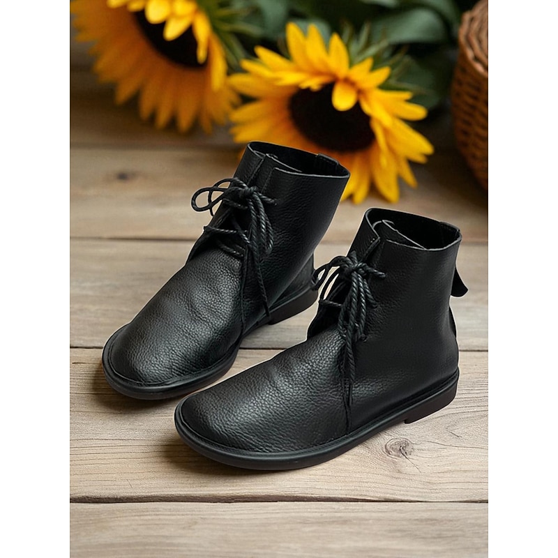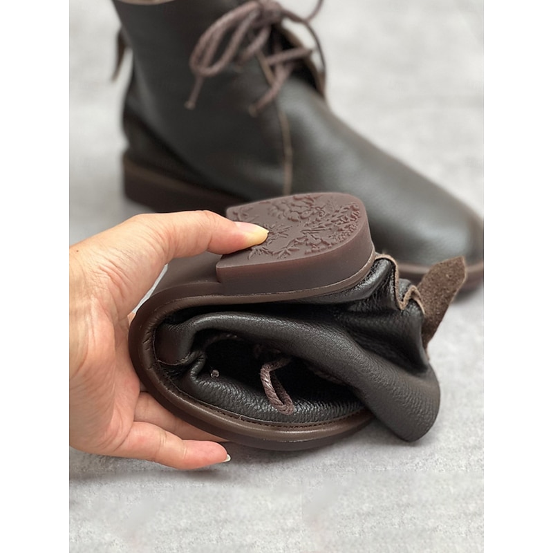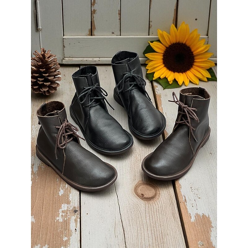 Why Choose Women's Coffee Genuine Leather Lace-Up Ankle Boots, Vintage Casual Round Toe Flat Booties, cozy Fall & Winter Shoes for Daily Wear and Outdoor Outfits?
