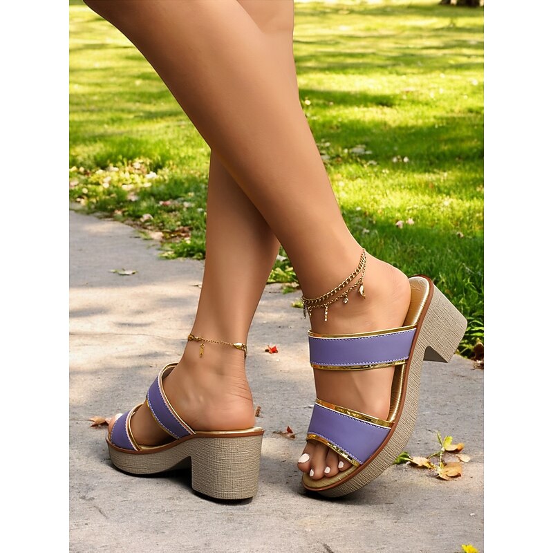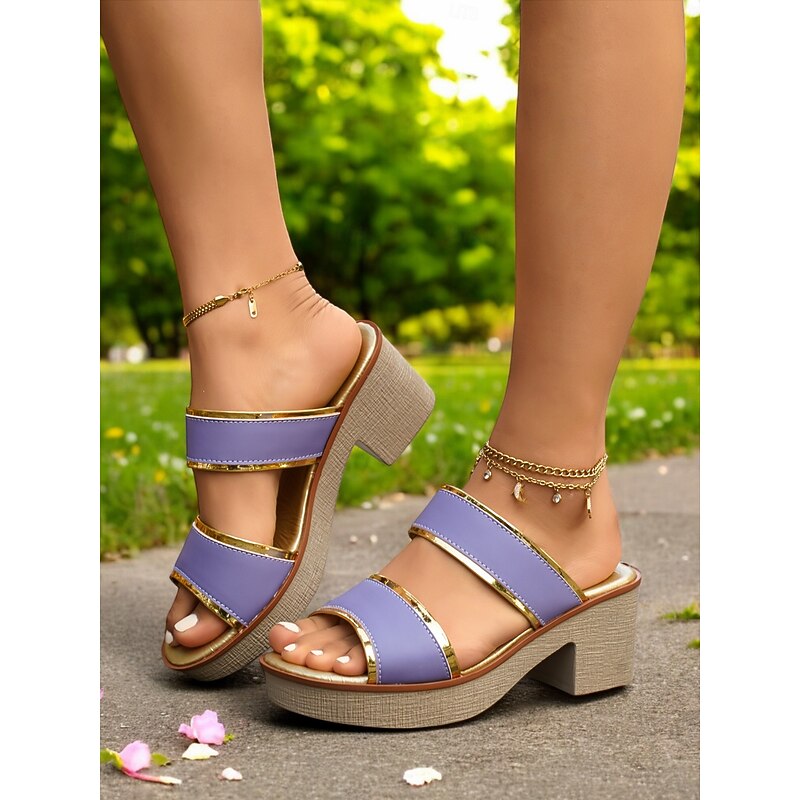 This Women's Chunky Heel Slip-On Sandals - Elegant Purple Open-Toe Mules with Gold Trim, sophisticated Summer Footwear for Parties & Casual Wear combines elegant design with practical functionality. Every detail has been carefully considered to ensure you get the best possible experience. The superior construction means this product will serve you well for years to come.