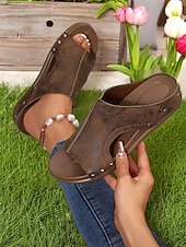 At motoshowbielsko.pl, we believe in providing our customers with only the best products. This Women's Rustic Peep-Toe Slide Sandals with Rivet Trim, Vintage Comfort Slippers for Garden Walks, Casual Homewear and Relaxed Outings is designed with attention to detail and high quality craftsmanship that you can see and feel. Whether you're looking for functionality, style, or both, this product delivers exceptional value.