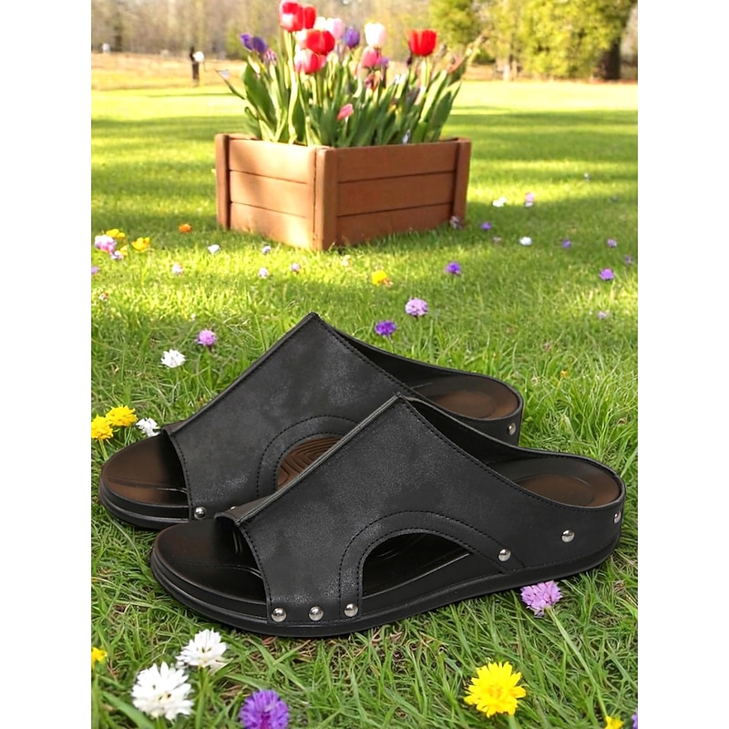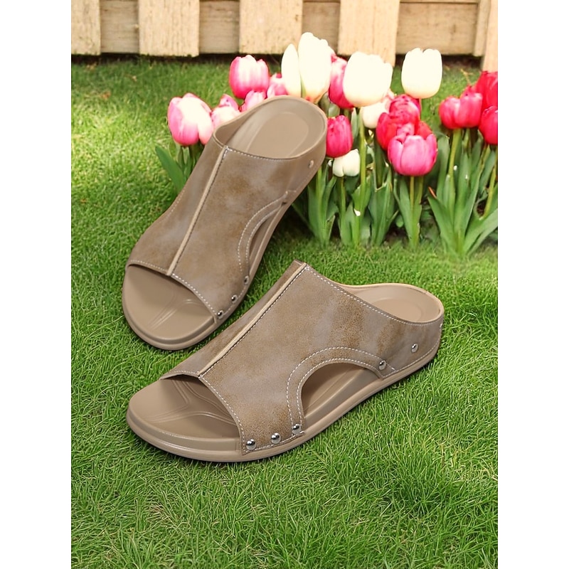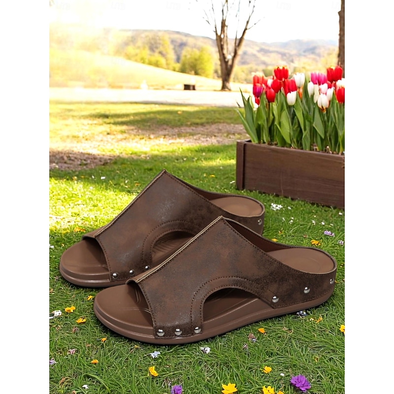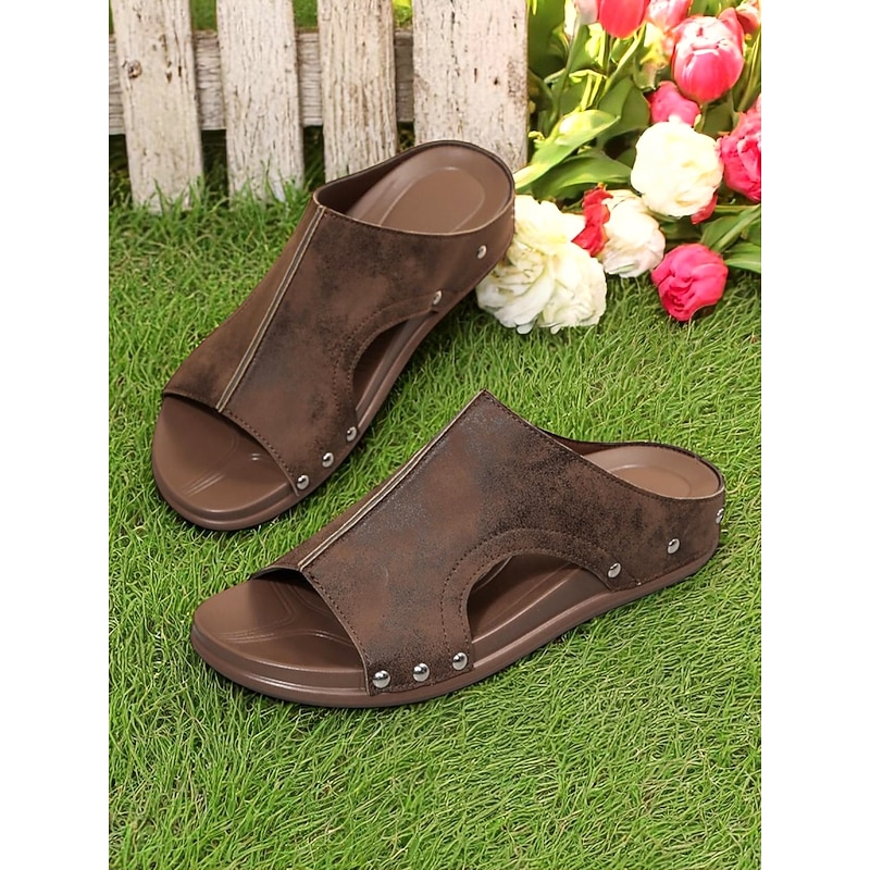 Why Choose Women's Rustic Peep-Toe Slide Sandals with Rivet Trim, Vintage Comfort Slippers for Garden Walks, Casual Homewear and Relaxed Outings?