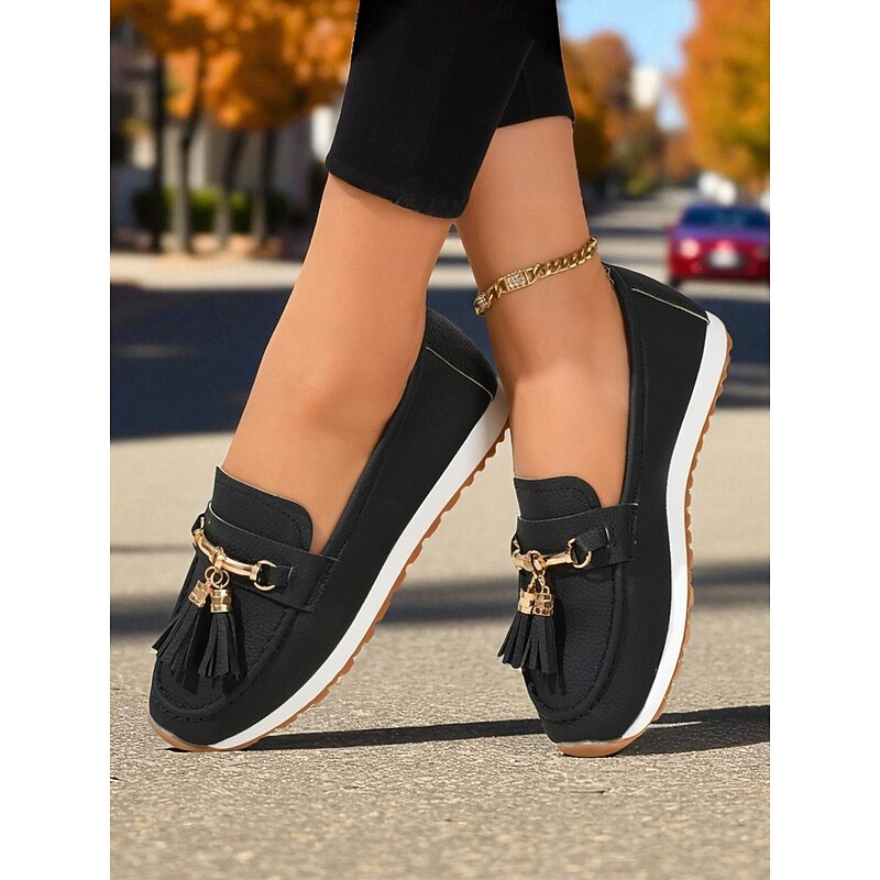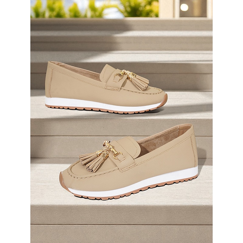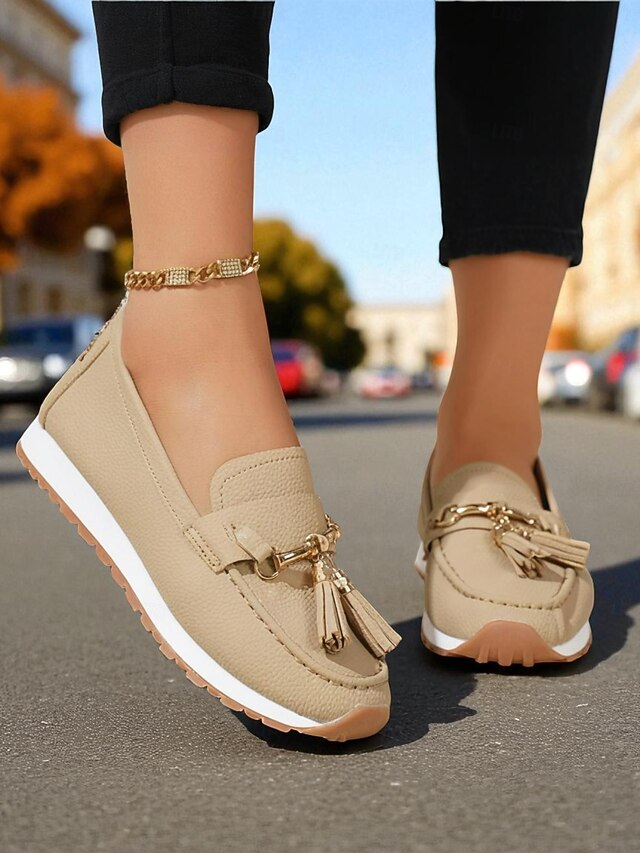 This Women's Beige Faux Leather Tassel Loafers with Gold Chain - Casual Preppy Style Flat Moccasins for Ladies, Ideal for Work, Driving, and Daily Streetwear combines elegant design with practical functionality. Every detail has been carefully considered to ensure you get the finest possible experience. The supreme construction means this product will serve you well for years to come.