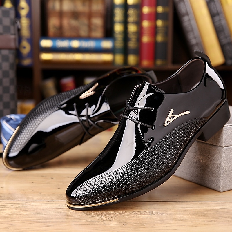 More information about Men's Patent Leather Oxford Shoes - Sleek Lace-Up Formal Dress Shoes with Textured Design for Business and Special Occasions
