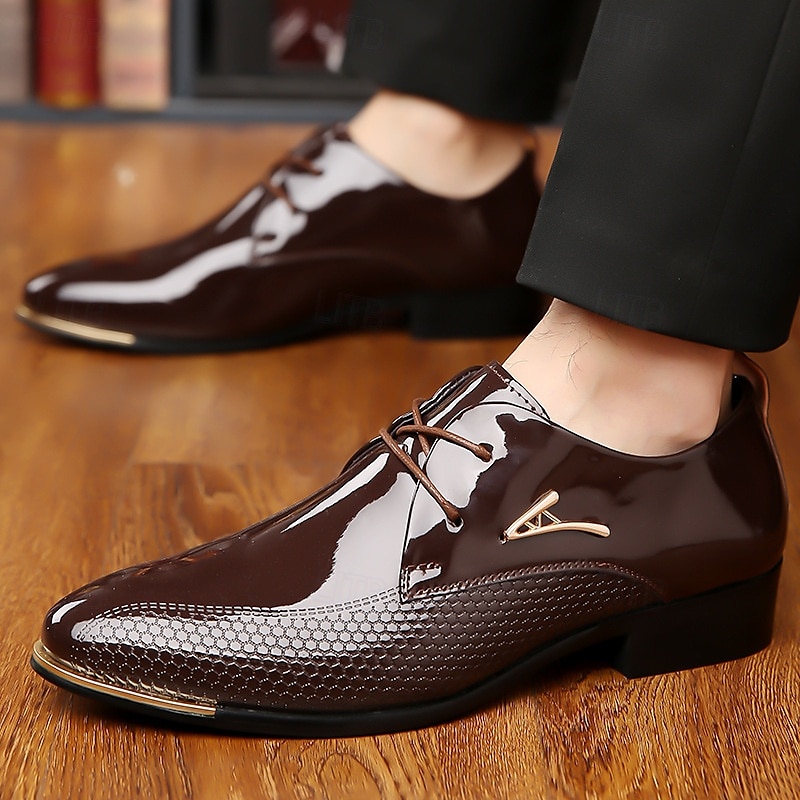 trending ! Men's Patent Leather Oxford Shoes - Sleek Lace-Up Formal Dress Shoes with Textured Design for Business and Special Occasions