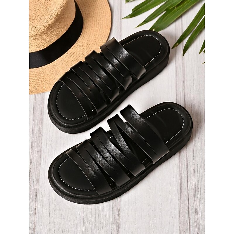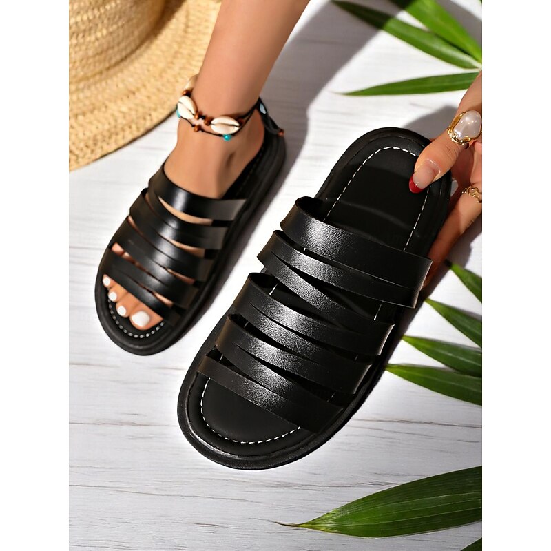 Why Choose Women's Brown Multi-Strap Slide Sandals – Casual Faux Leather Flats for Beach, Resort, and Vacation Outfits?