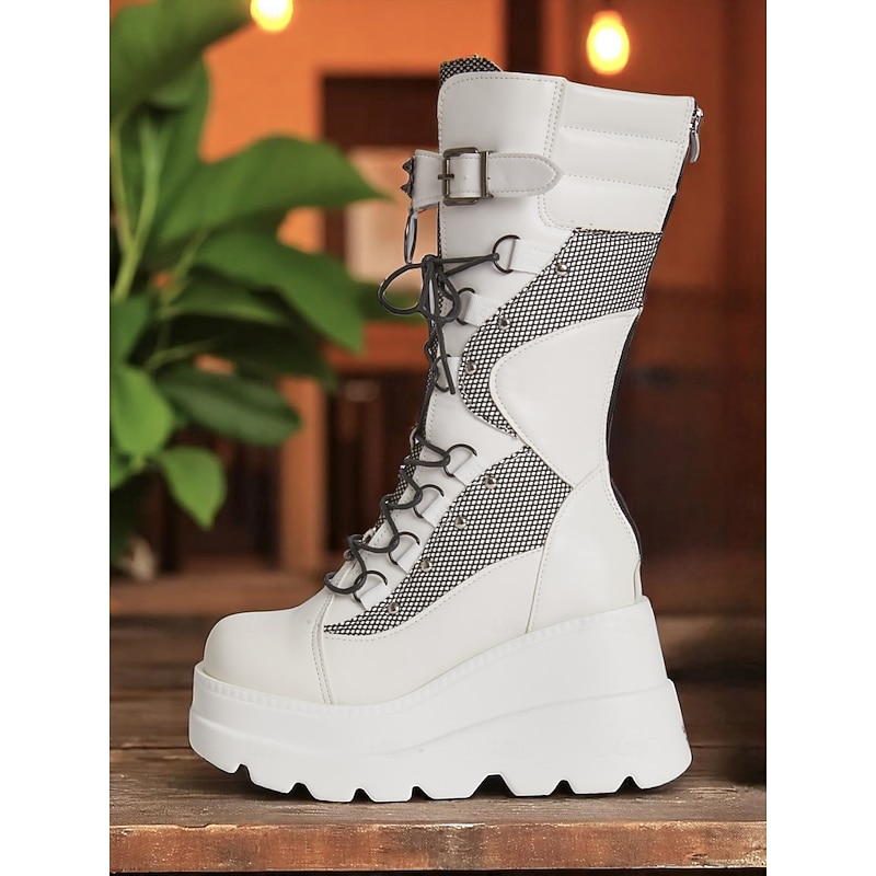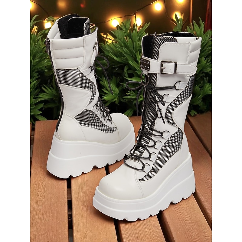 This Women's White Platform Combat Boots, Lace-Up Mesh Panel High Ankle Boots with Buckle Straps, Edgy Streetwear Style for Nightlife and Party Looks combines elegant design with practical functionality. Every detail has been carefully considered to ensure you get the finest possible experience. The supreme construction means this product will serve you well for years to come.