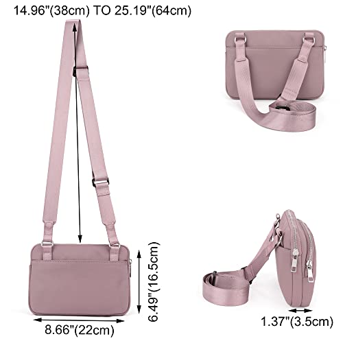 Fabric type: Synthetic LeatherClosure type: ZipperLining: NylonHIGH QUALITY - plush synthetic leather, water-resistant and easy to clean.WELL DESIGN - **premium smooth zipper hardware. **Adjustable nylon shoulder strap prevents sliding off your body.3 SEPARATED ZIPPER POCKETS with thick zipper closure. Your phone, money, credit cards, house keys, ear phones, passport, tickets, lipsticks, makeups and other essential items can be well organized in this purse.VARIOUS OCCASIONS - shopping/dating/quick out/evening out/outdoors walking/workout/traveling/casual running/hiking/cyclingDIMENSIONS - 8.66L x 6.49W x 1.37H (22x16.5x3.5cm). Weight: 0.4 pounds(180g). Adjustable strap drop: 14.96-25.19(38cm-64cm). Perfect for everyday use. High quality materials and excellent craftsmanship ensure long-lasting durability.