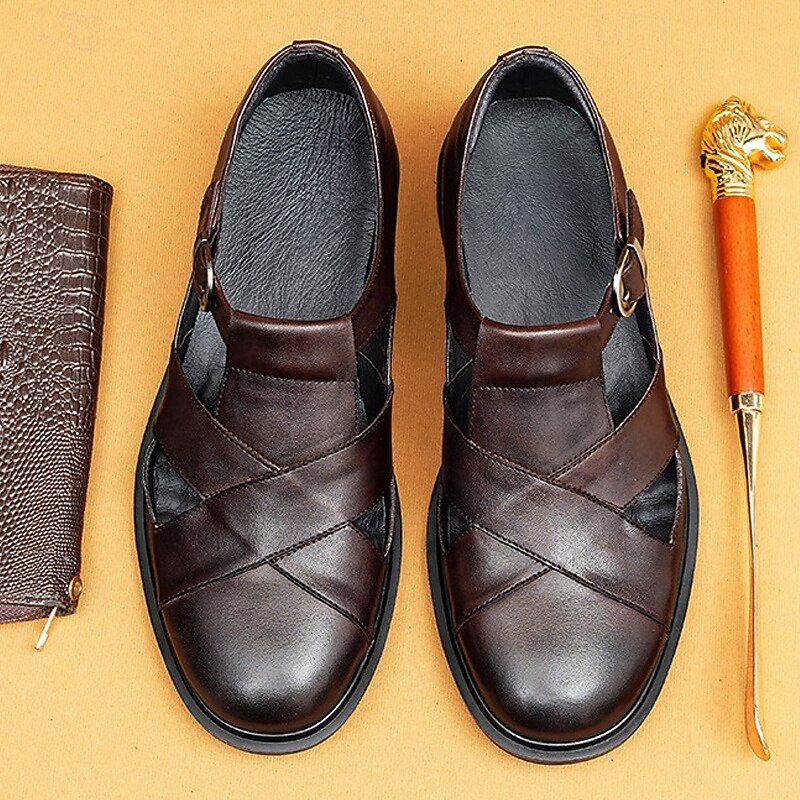 More information about Men's Leather Sandals with Closed Toe – Breathable Non-Slip Summer Shoes for Formal Gatherings, Church and Outdoor Wear
