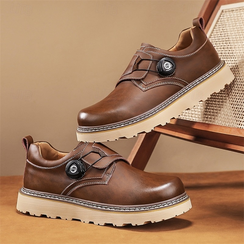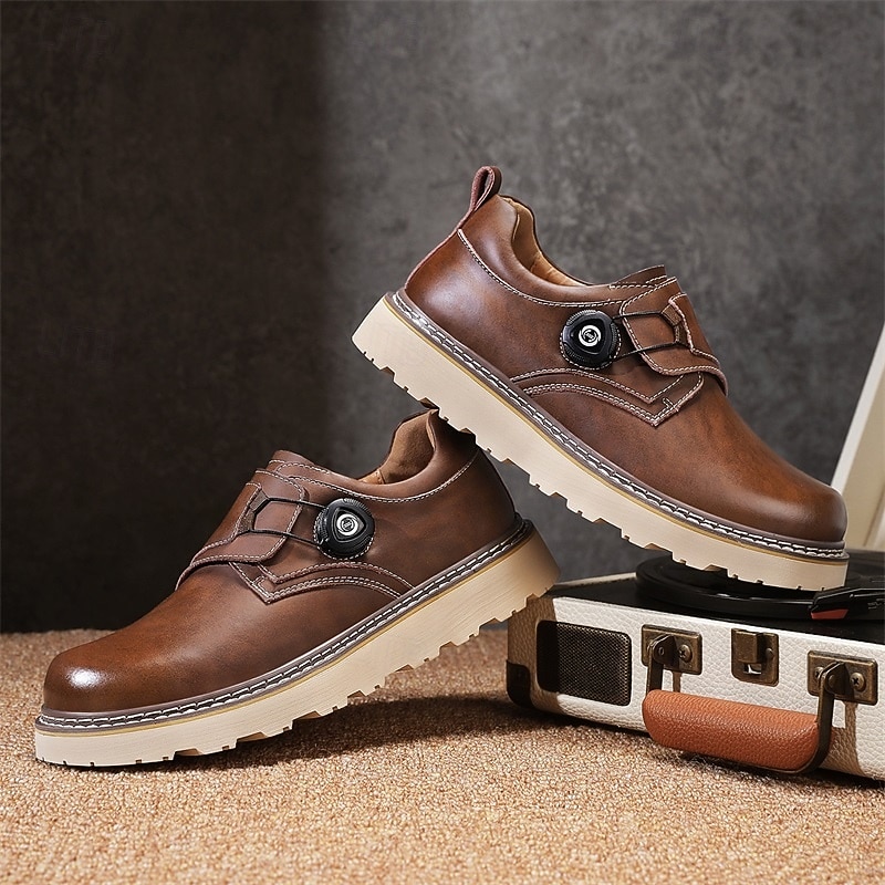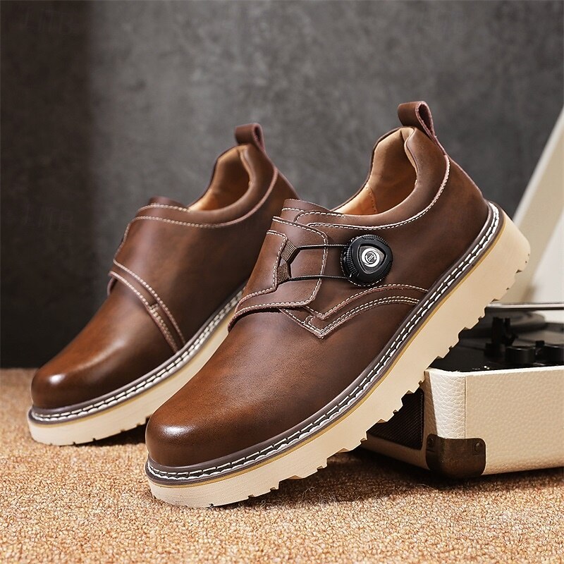 Why Choose Men's Brown Casual Work Shoes – robust Non-Slip Sole, Easy Twist Lock Closure, cozy Low-Top Design for Daily Wear, Office, and Outdoor Activities?