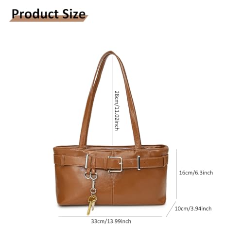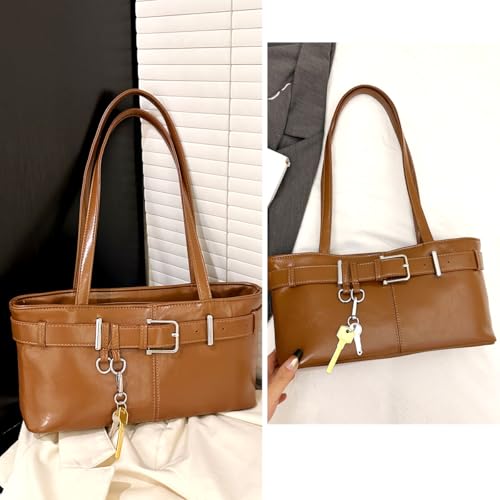 Vintage Y2K Shoulder Bag for Women,Small Belt Buckle Satchel Purse Leather Handbag Clutch Purse, Underarm Tote Handbag for Daily Use - Brown