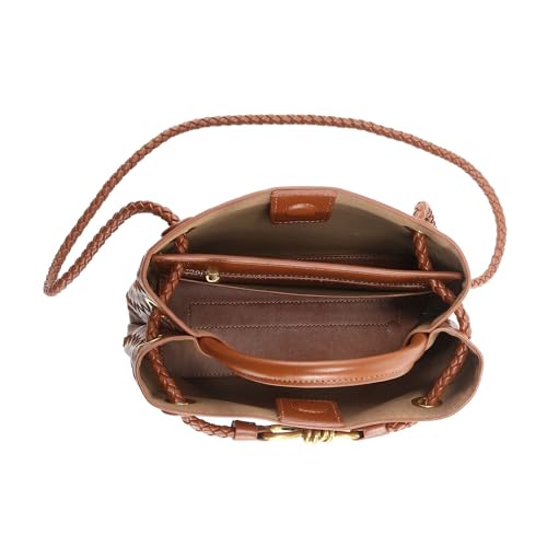 Woven Leather Handbag, Bucket Style Tote with Gold Lock Design, Top Handle Shoulder Bag for Women, Clutch Bag (Light Blue)
