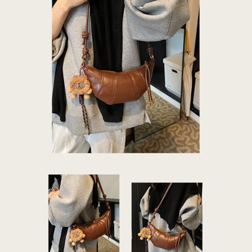 Crescent Shoulder Bags for Women, Trendy Vintage Hobo Handbag Y2K Dumpling Crossbody Purse With Zipper Closure