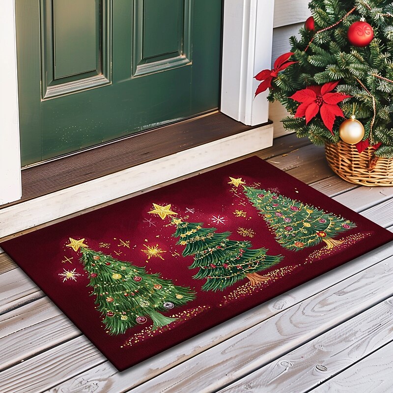trending ! Christmas Decorations Doormat Christmas Trees Kitchen Mat Floor Mat Non-Slip Area Rug Oil Proof Rug Indoor Outdoor Mat Bedroom Decor Bathroom Mat Entrance Rug