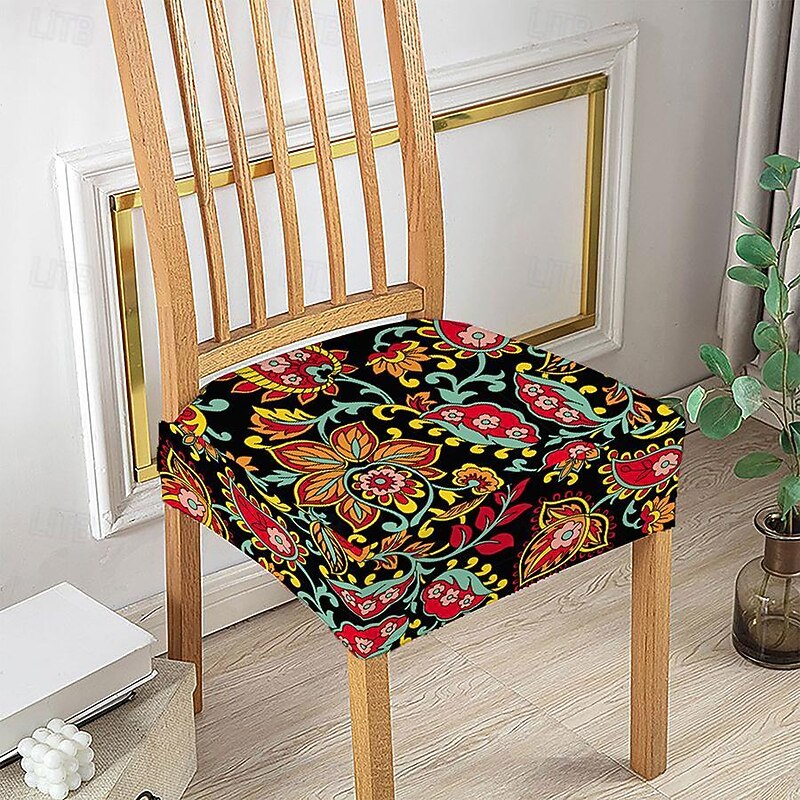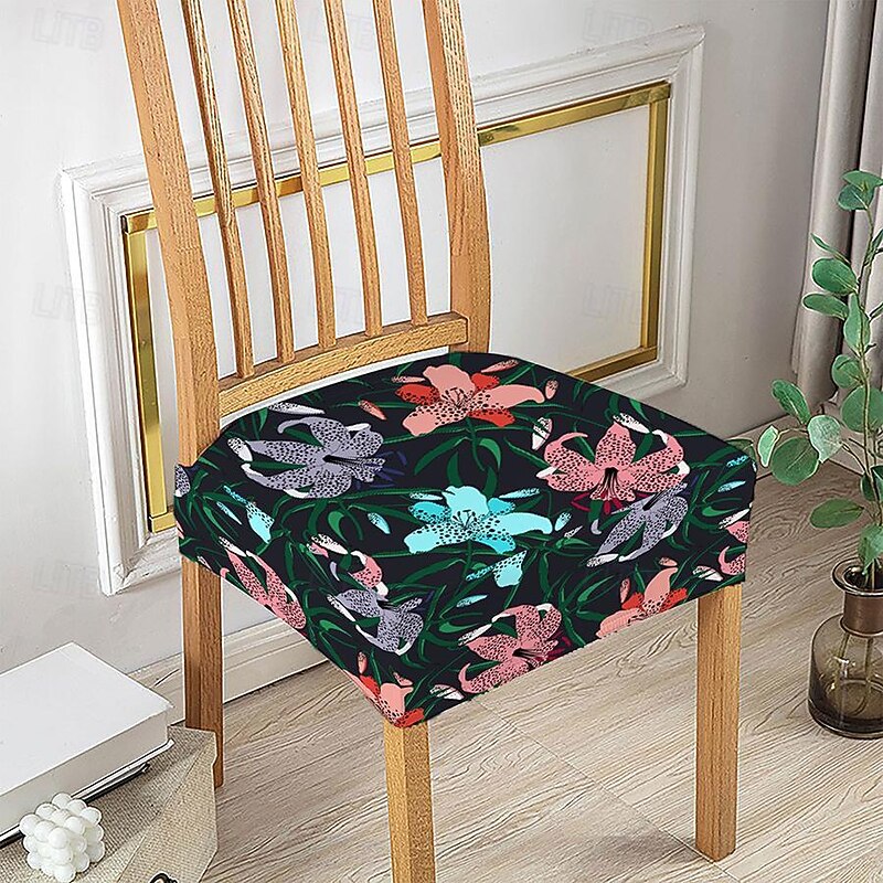 trending ! Stretch Seat Covers for Dining Room High Back Dining Chair Cover Floral Printed plush Removable Washable Seat Covers for Dining Chairs, Dining Room Seat Cover Protector