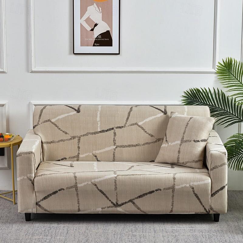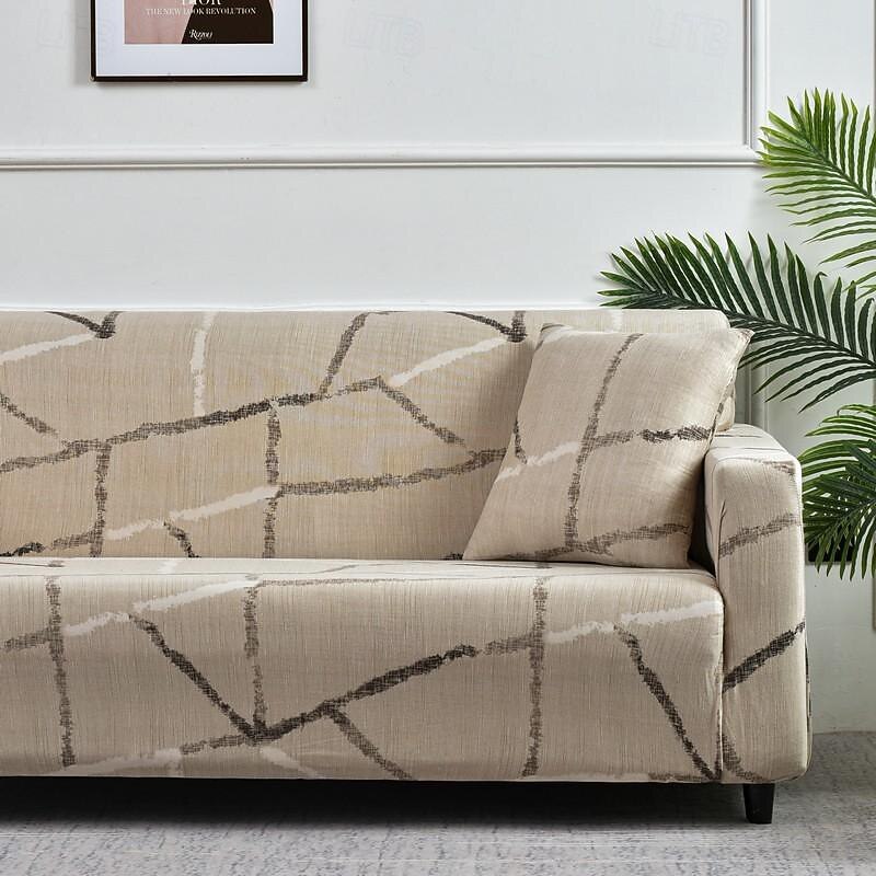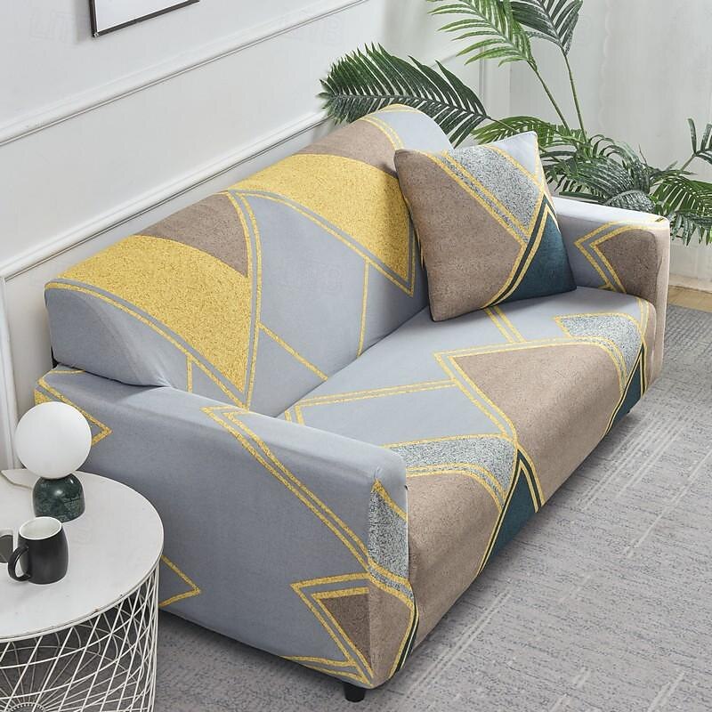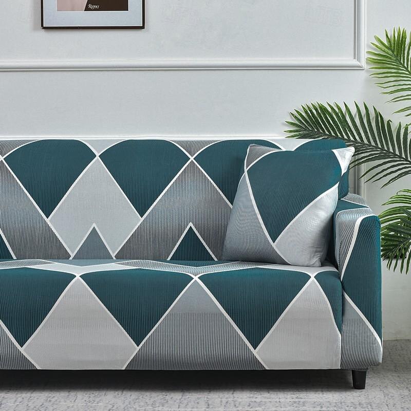 Geometric Color Blocks Sofa Cover Elastic Sofa Slipcover L Shaped Couch Cover Furniture Protector for Bedroom Office Living Room Home Decor