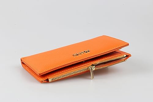 trending ! grande 2804 Genuine Leather Medium Bifold Wallet For Women Minimalist Wallet Ladies Zippered Mini Purse Small Card Holder (Orange)