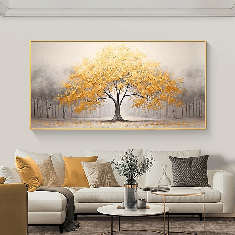 trending ! Handmade Oil Painting Canvas Wall Art Decor Original yellow tree texture trees in full for Home Decor With Stretched FrameWithout Inner Frame Painting