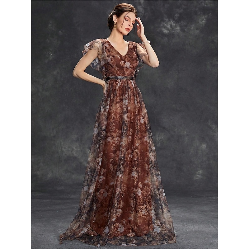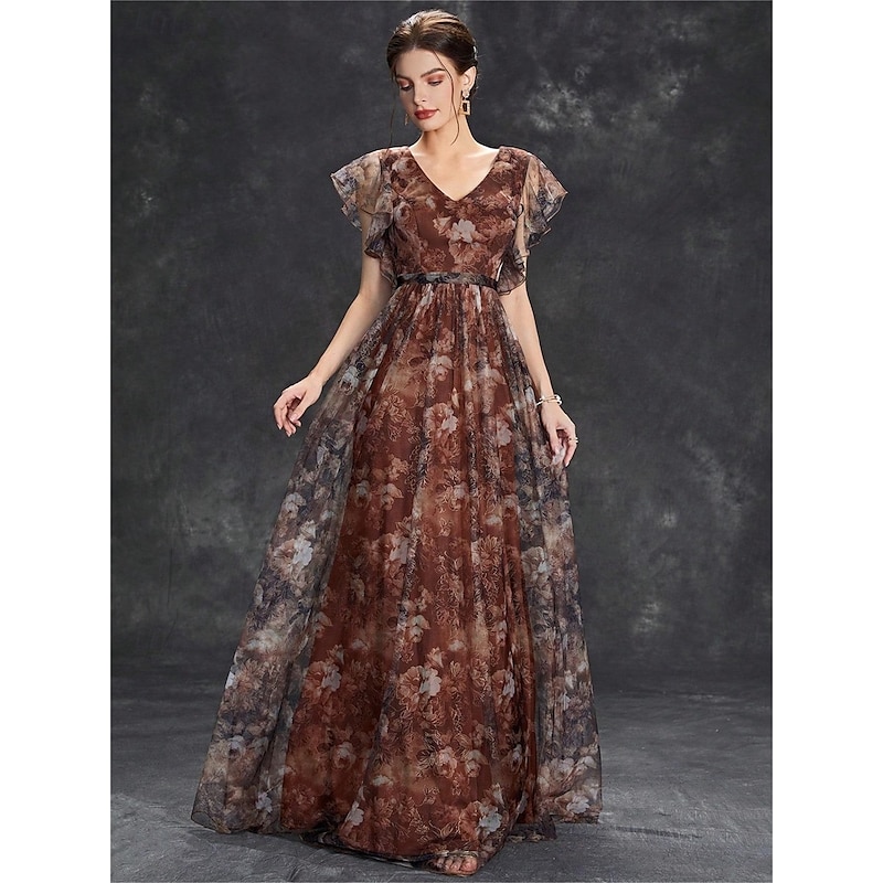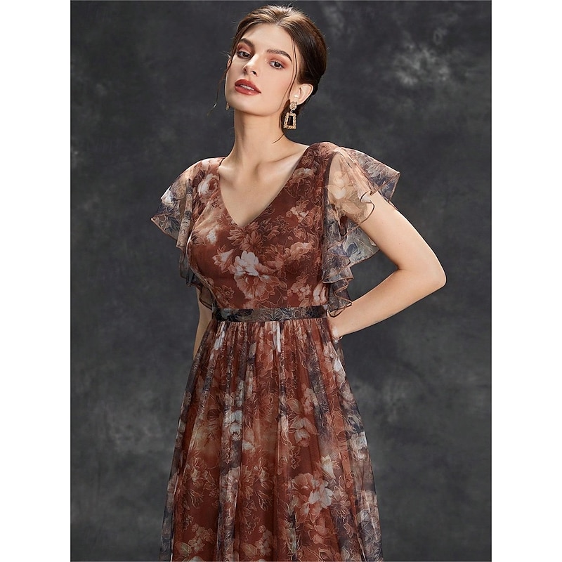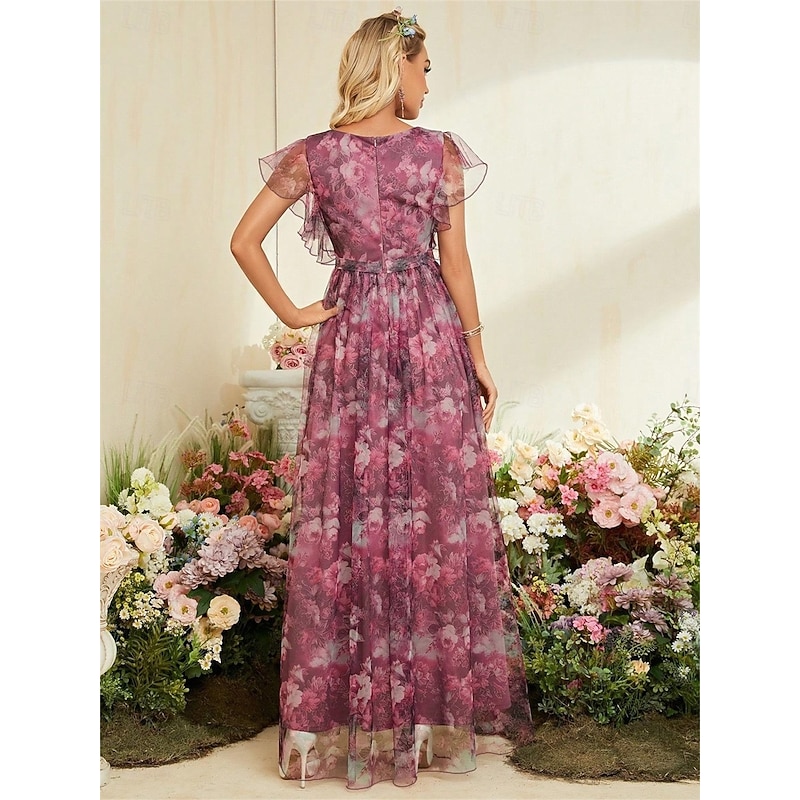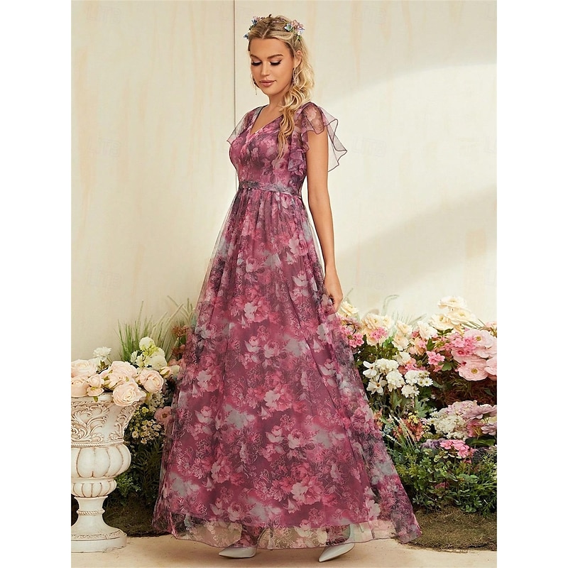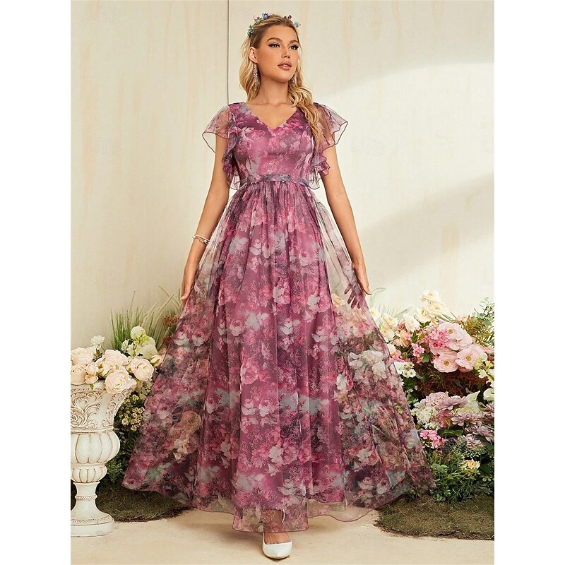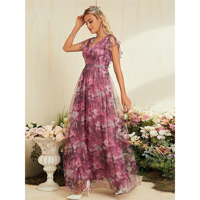 More information about A-Line Quinceanera Dresses Elegant Dress Formal Wedding Floor Length Sleeveless V Neck Chiffon with Floral Print