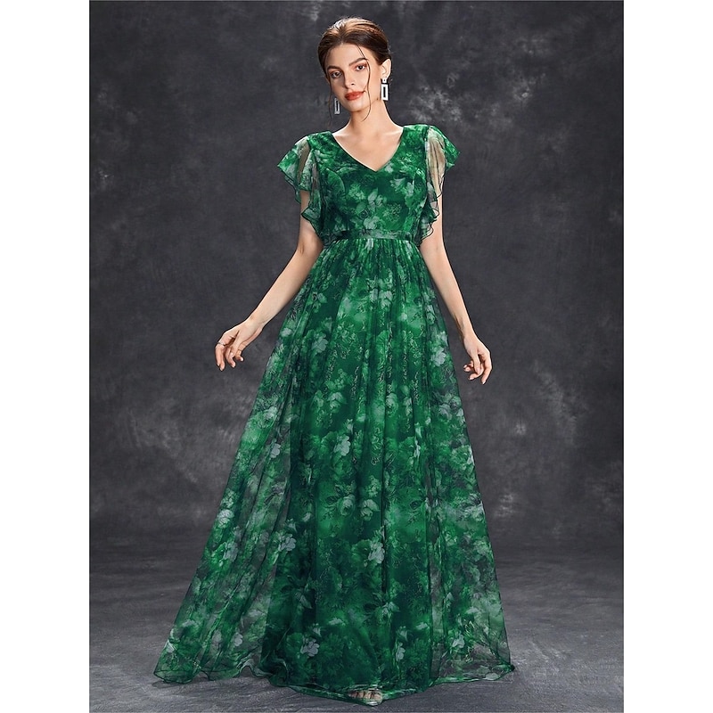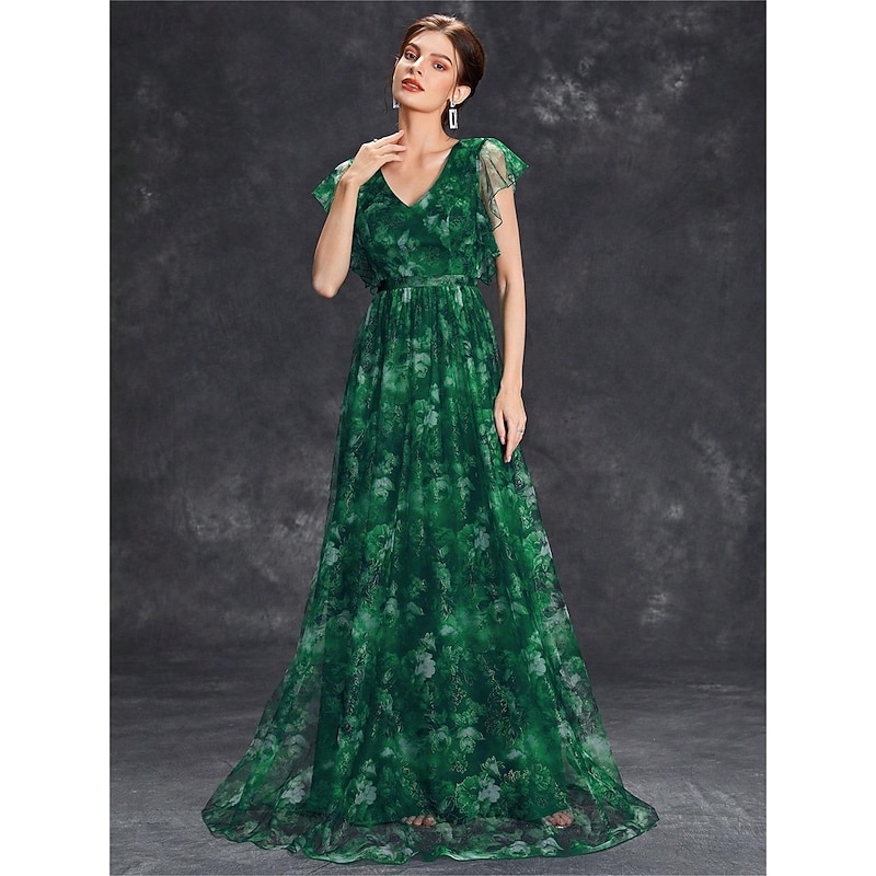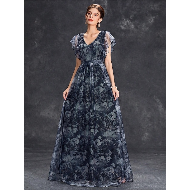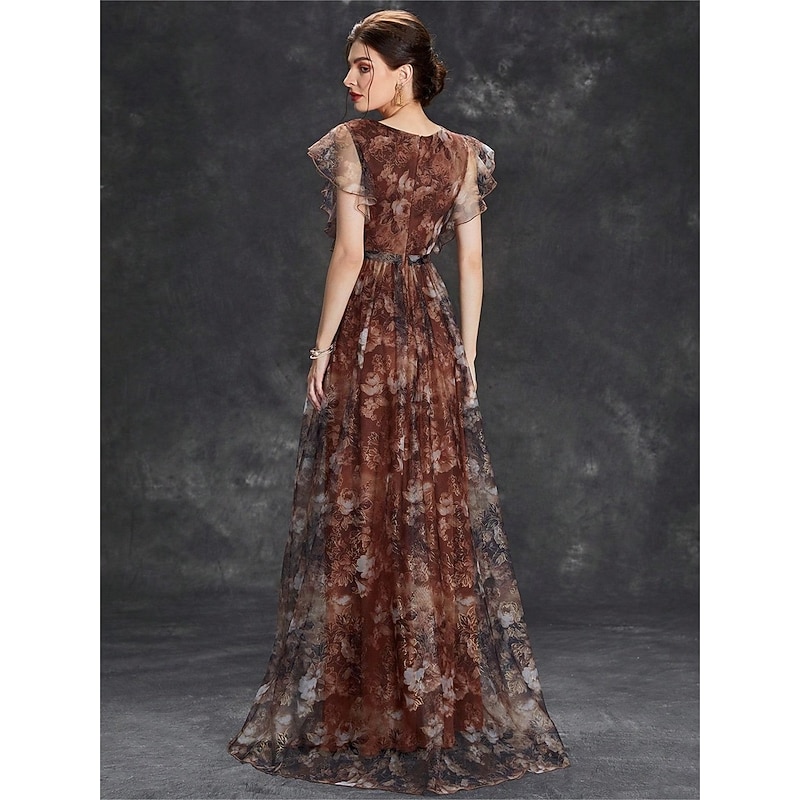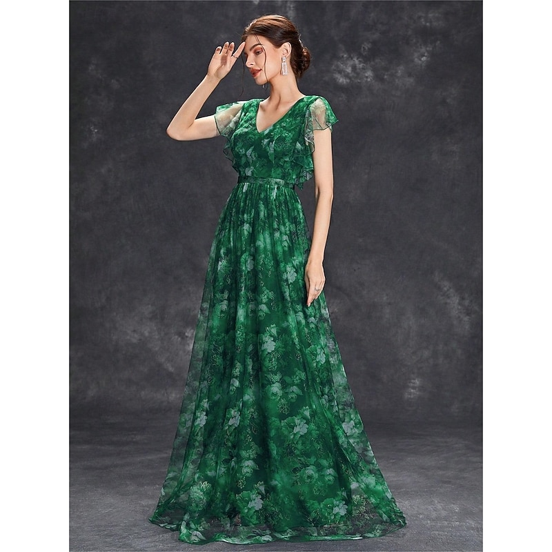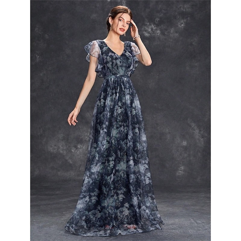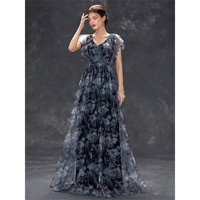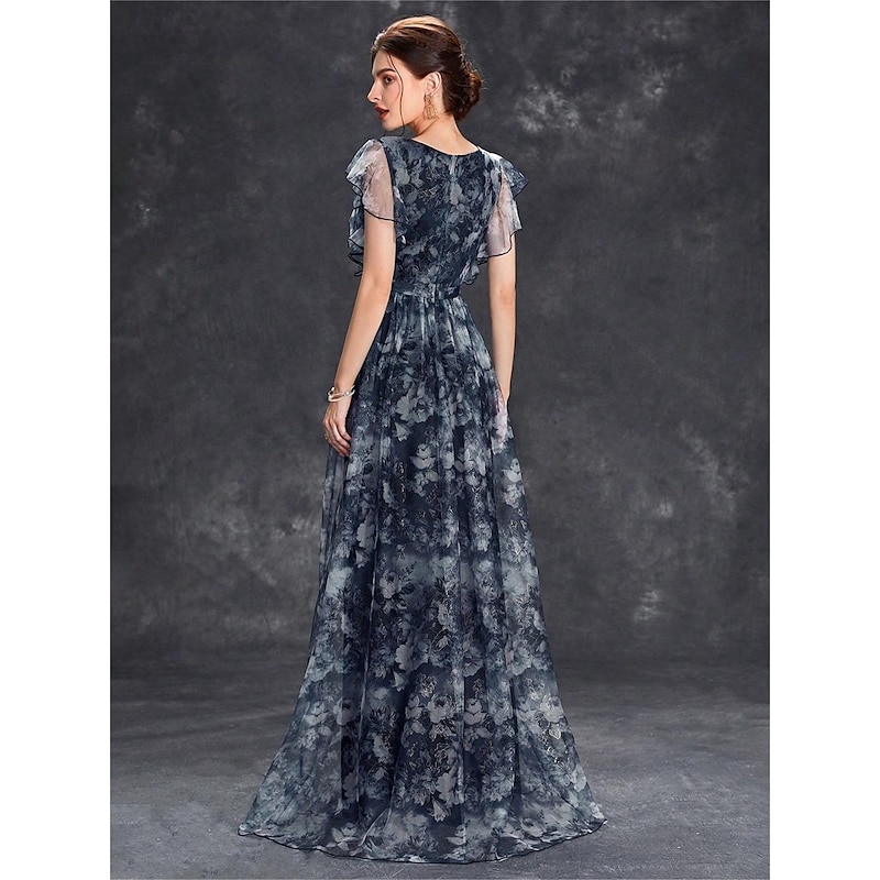 More information about A-Line Quinceanera Dresses Elegant Dress Formal Wedding Floor Length Sleeveless V Neck Chiffon with Floral Print