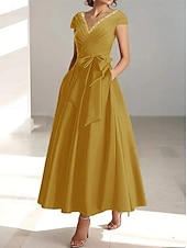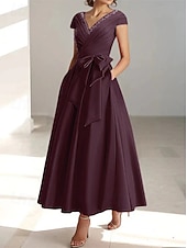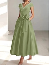 $139.99 - A-Line Cocktail Dresses Elegant Formal Wedding Guest Ankle Length Short Sleeve V NeckDress Satin with Bow(s) 2025. Shop for cheap Cocktail Dresses online? Buy at lightinthebox.com on sale today!
