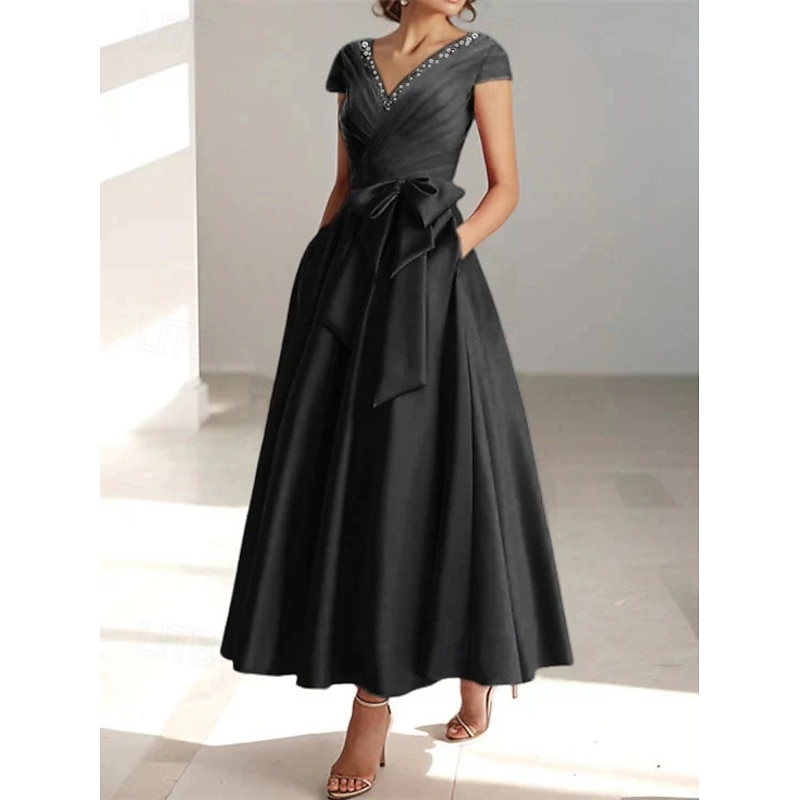 This A-Line Cocktail Dresses Elegant Formal Wedding Guest Ankle Length Short Sleeve V NeckDress Satin with Bow(s) combines elegant design with practical functionality. Every detail has been carefully considered to ensure you get the leading possible experience. The supreme construction means this product will serve you well for years to come.