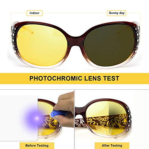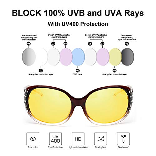 LVIOE Night-Vision Driving Glasses Wrap Around Anti Glare with Polarized Yellow Lens for Women