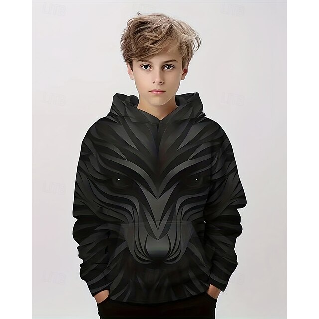 trending ! Boys 3D Graphic Animal Hoodie Long Sleeve Spring Fall Fashion Streetwear Kids 4-12 Years Hooded Outdoor Casual Daily Regular Fit